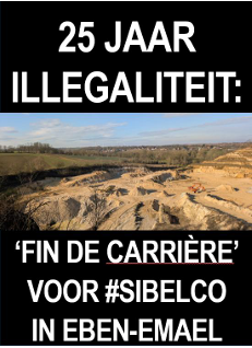Intussen vraagt Sibelco opnieuw een vergunning voor 20 jaar in Eben-Emael, met een nieuwe toegang boven op de Hallembaye en het opvullen van de groeve met externe grond. Tegen deze aanvraag heeft onze vereniging heeft bijna duizend handtekeningen verzameld van verontwaardigde inwoners in Eben-Emael en omstreken.